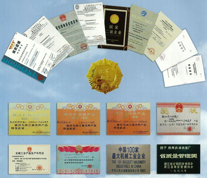 公司產(chǎn)品通過了ISO9001:2000認(rèn)證,曾多次獲得國(guó)家優(yōu)等品、國(guó)家金質(zhì)獎(jiǎng)、浙江省名牌產(chǎn)品等諸多榮譽(yù)。“飛鴿”和“武林”兩個(gè)知名品牌聞名遐邇,成為國(guó)內(nèi)名優(yōu)產(chǎn)品。